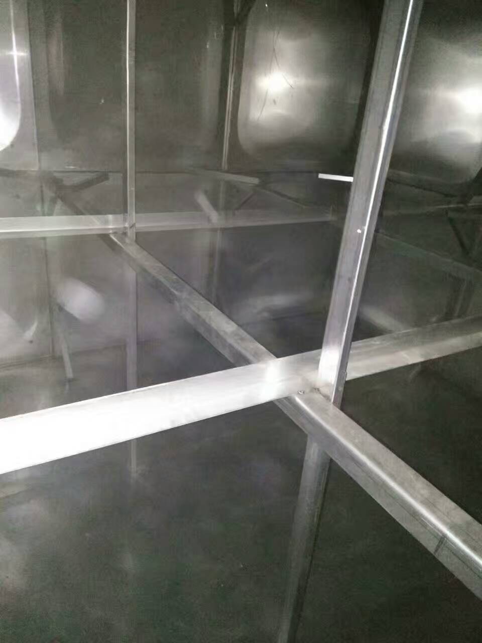 這么多年來,不銹鋼水箱使用方多次問我,水箱內的拉條斷了是什么原因,今天是星期天有時間借此解說一下:比如不銹鋼消防水箱內部拉條,另一種叫法就是拉筋,拉筋分為主拉筋和負拉筋,主拉筋規格一般是40mm*40mm,負拉筋規格是30mm*30mm,不銹鋼水箱主拉筋安裝位置在4塊水箱板中間位置,先把4塊水箱板焊接成“十字”后,把主拉筋一段頂在水箱板十字位置后,用氬弧焊機先點焊固定,然后再把另一端點焊固定,步驟和剛才講過的是一樣。都固定好了調節氬弧焊機電流,對主拉筋滿焊,現在強調的是焊接時焊接電流不能過大,過大對板材燒焦過高損壞就嚴重了,不然這種焊口在水箱內部時間長了,水對焊口氧化腐蝕得快,也就是為什么不銹鋼水箱容易生銹,時間不長在水箱內部生銹,水箱外面就能看到針眼大小的窟窿眼,如果出現了窟窿眼子在對不銹鋼水箱焊接,可以說是越焊越不行,水箱實際更不耐用,氧化程度更嚴重,所以說焊接時電流調節很重要,電流小氬氣壓力高些這樣焊接出來的達標氧化輕,水箱板腐蝕嚴重的只有更換水箱,就沒有修的價值了。還有重要提示一點是,焊接完畢后必須要對焊口鈍化處理,除去當時焊接氧化表面,對將來水箱使用壽命至關重要,下面是圖片介紹。